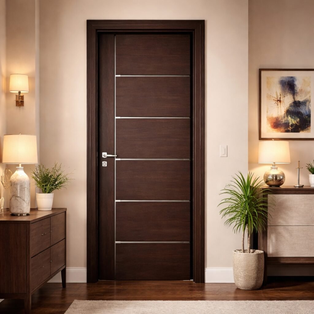 Moisture-resistant PVC doors suitable for bathrooms and utility areas, offering affordability, durability, and easy maintenance.